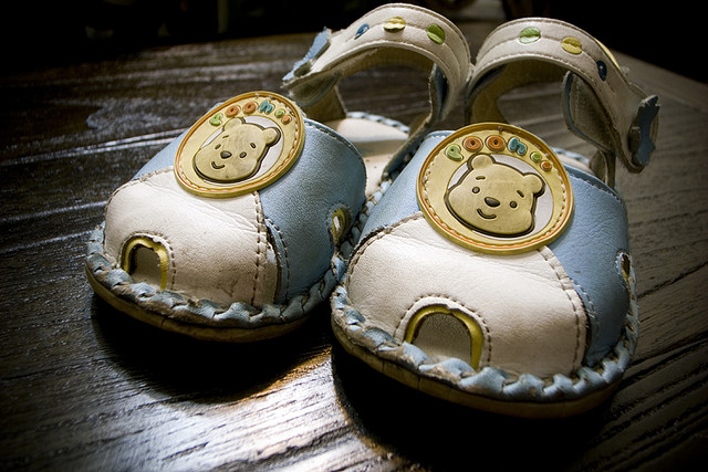 第一雙鞋鞋,超級小的。每次幫你穿脫都覺得很好笑。