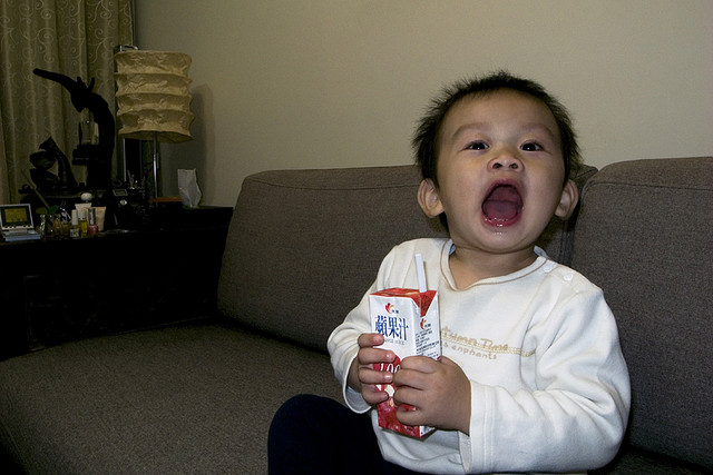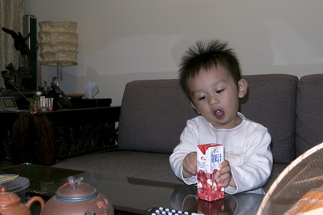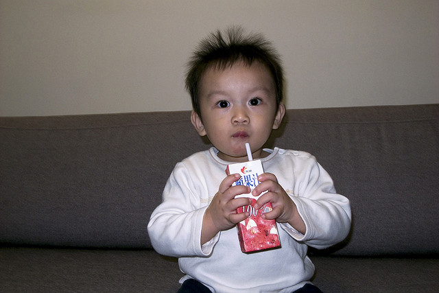 吃可以忘記一切,所以⋯⋯自己會插吸管。還一邊開心的唱歌。