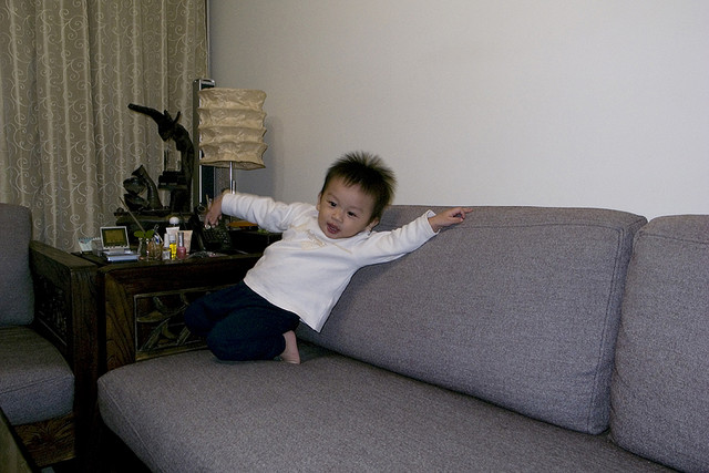 把果汁拿起來,你又開始不安份,那大沙發是我的位置⋯⋯你的位置在旁邊。