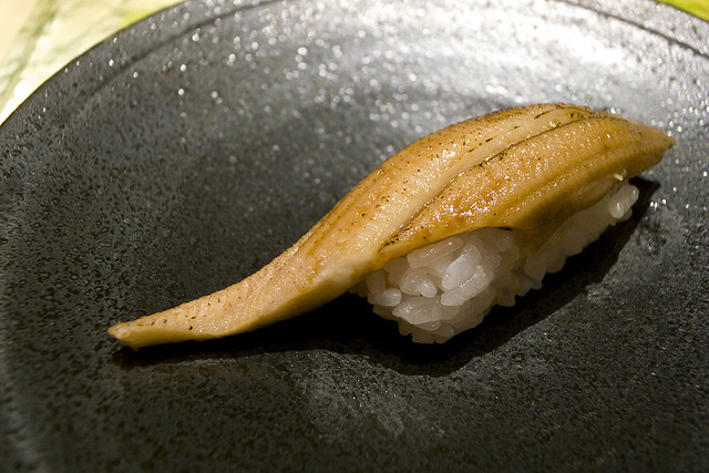 滋~滋~在火焰下的壽司發出聲響。