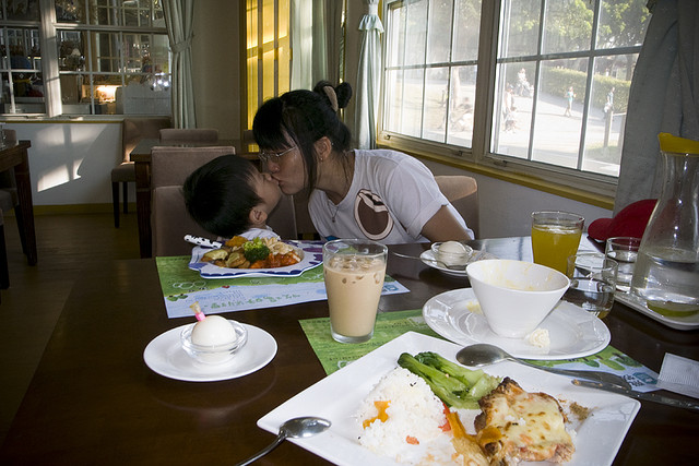 你把兒童餐吃了,也把我的湯喝了。最後人都走光了你還在吃。