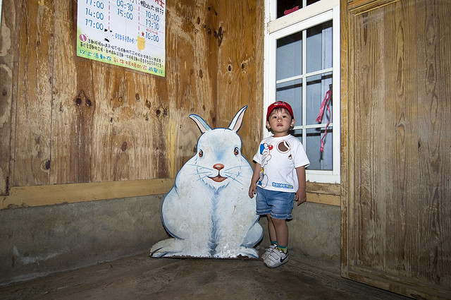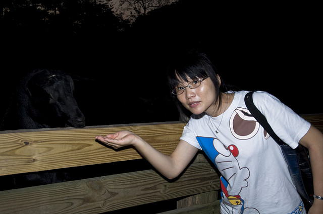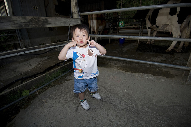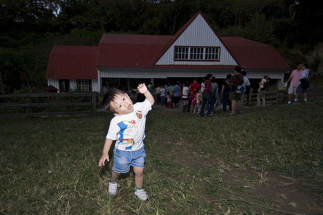 你學著瑩拿起地上的乾草餵牠,大聲喊著:牠吃了、牠吃了我的草。
