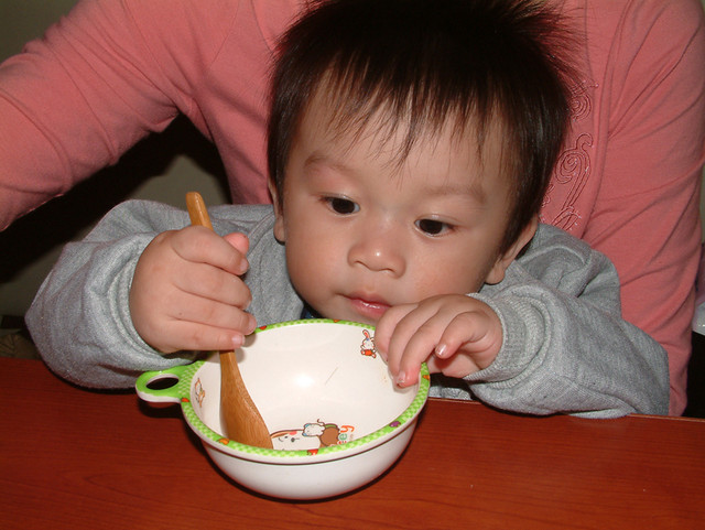 那時候碗盤、筷子、湯匙,你都還拿不穩。