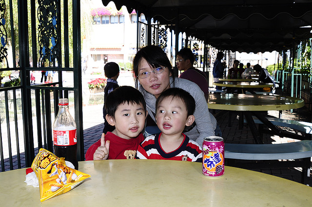 瞧你媽多貼心,怕我們晒太陽。把我們安排在陰影中......
