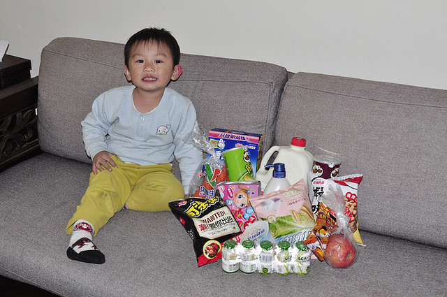 買了這堆應該是夠吃了,但你覺得還是不夠,持續的搬。而我又偷偷地放回去。