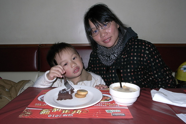 餐廳內跑來跑去,你看到了冰淇淋,哀求的你媽讓你吃。