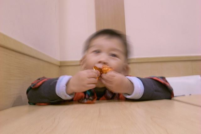 你的玩具、糖果都備齊。一不耐煩,糖果趕緊塞近嘴裡。