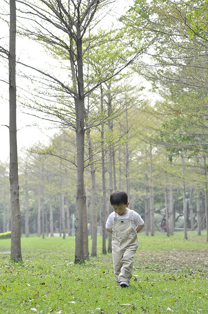 接著又開始調皮起來,撿了跟樹枝挖泥土。再到處拋⋯⋯