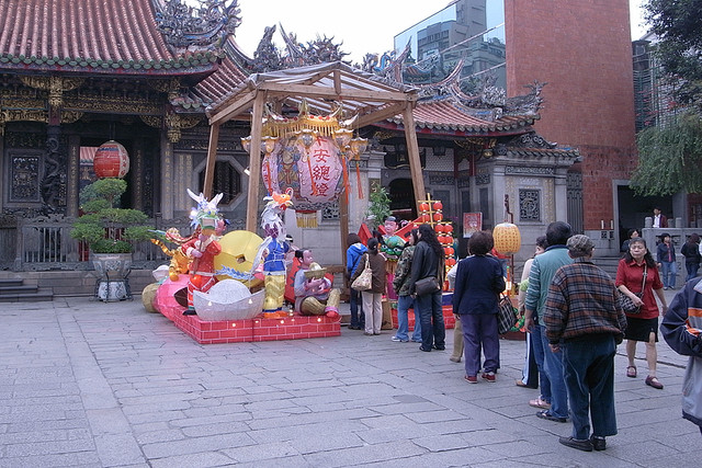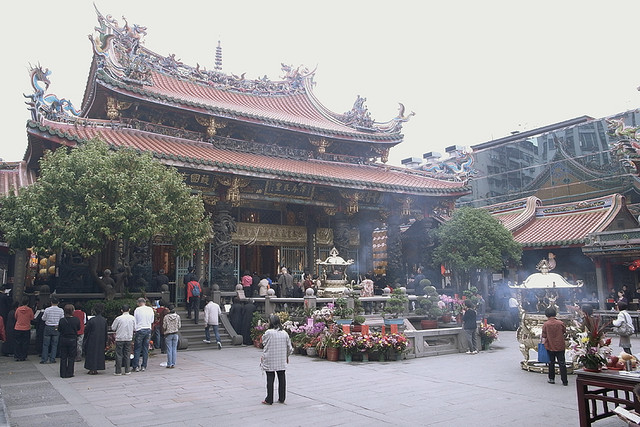 八點多龍山寺裡面就滿是遊客,周圍一個接一個的黑衣人?