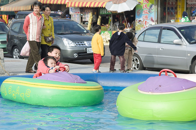 有行人、車子、船,讓整個畫面很突兀。假日我們坐上大舅舅新車一起去竹圍漁港,