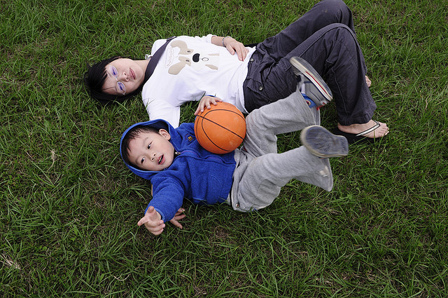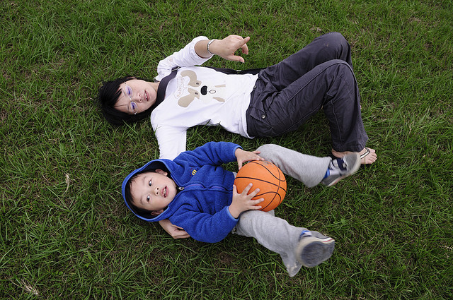 拍照、打球、跑步,我們還走了一大圈。你流了滿身汗,這樣感冒一定會很快好。