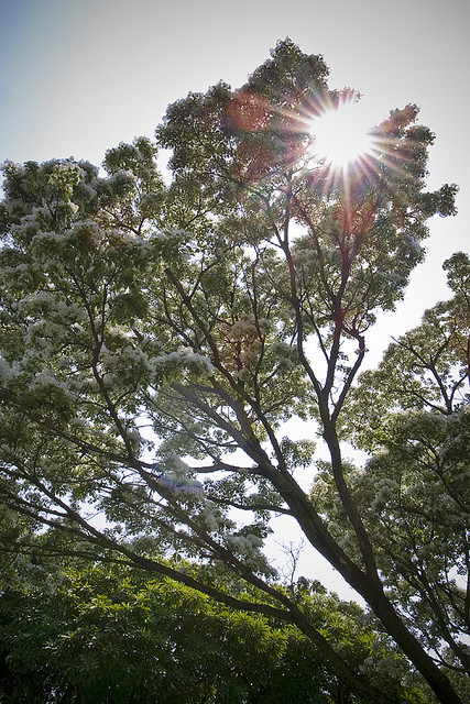 228公園內流蘇開了,整個樹蓋上白茫茫得一片。