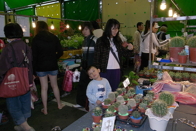 雖然是飄著雨,時大時小。我們還是陪著你媽到花市買花?