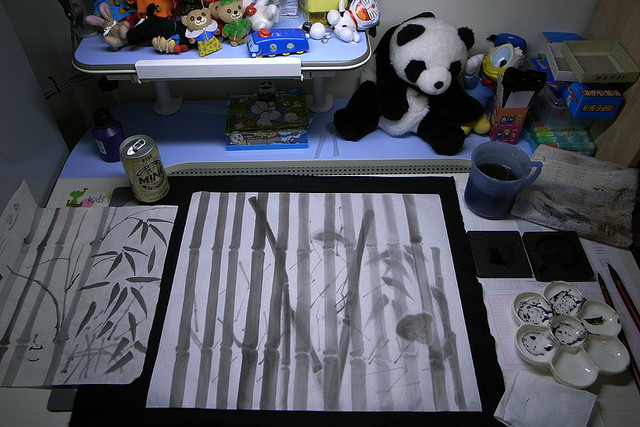 國畫老師說:你中鋒筆畫得蠻直的,加油!