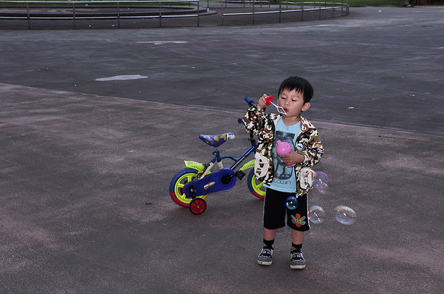 瑩:因為你還不會雙腳輪流踩,所以不需要鈴鐺。等你學會騎車馬上幫你裝上。