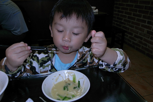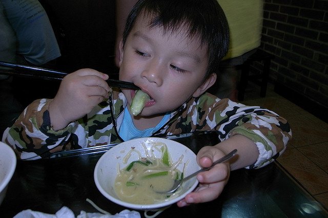 那媽媽一直說:你們兩個看那弟弟,不用別人餵。還吃光光!
