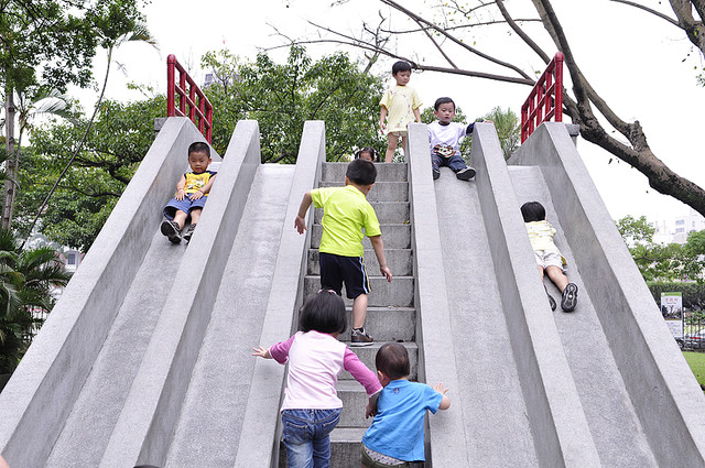 咒罵了一聲,還好像機沒事。石頭作的滑梯加上非常滑的地墊,超級危險。