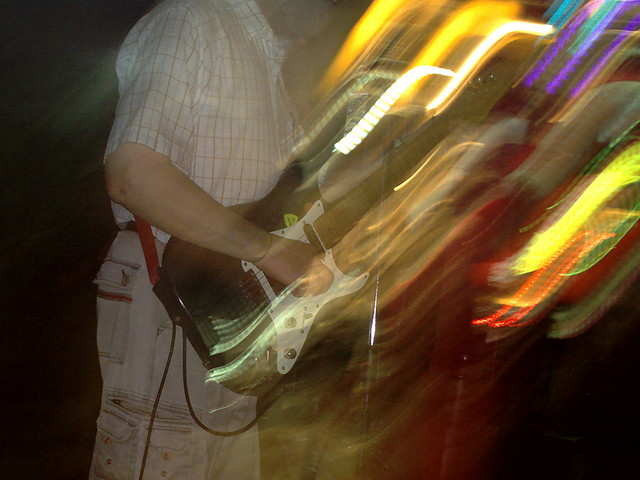 望著演唱街頭藝人,你靠了過去自然的拿起相機。