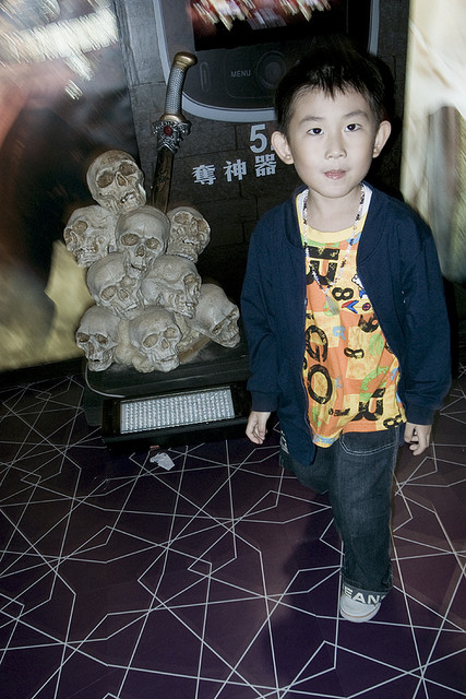 哈哈~你非常的害怕那個頭骨。一直躲在小雞哥哥後面。