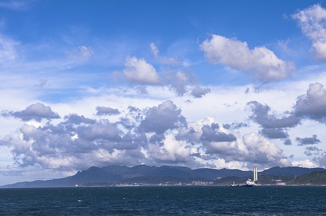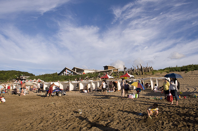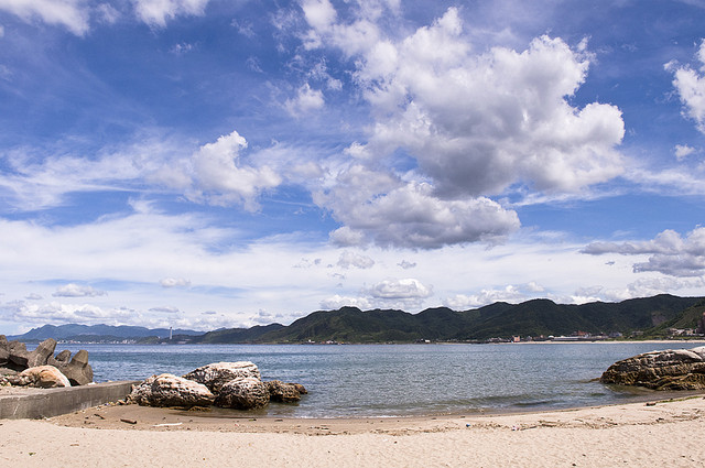 海邊其實也沒有地方躲啊,她只有撐起傘幫我忙嘍~