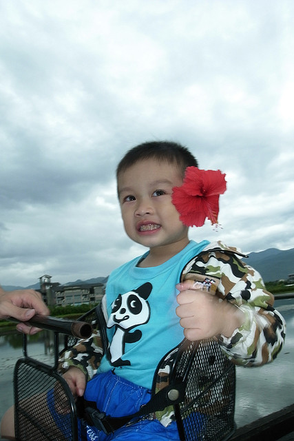 因為雨勢稍微變小,整群的阿姨、叔叔陪你,我一手拿著小傻瓜一手騎車慢慢著跟在你後頭。