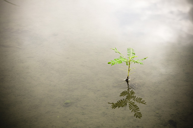絲瓜棚~絲瓜都爛了,只好拍拍倒影。
