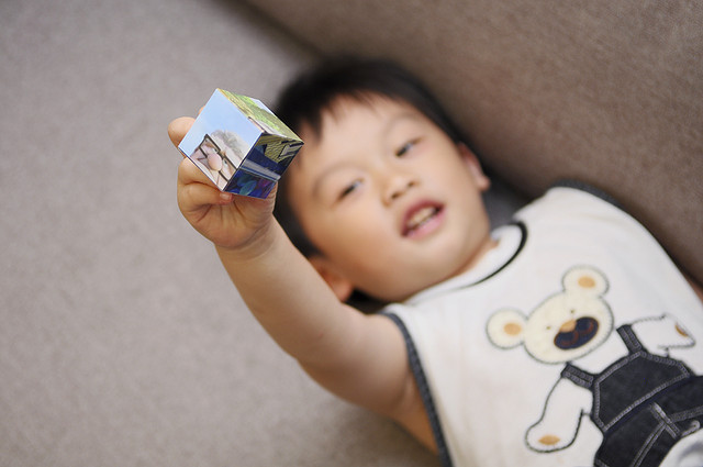 你翻轉拼圖的速度超快速,胖胖小手轉呀轉的。