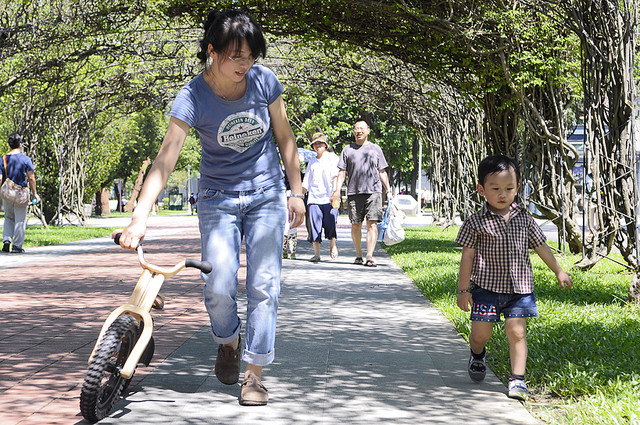 剛到這就見著很多爸媽帶著小朋友,親情的力量把太陽比了下去。