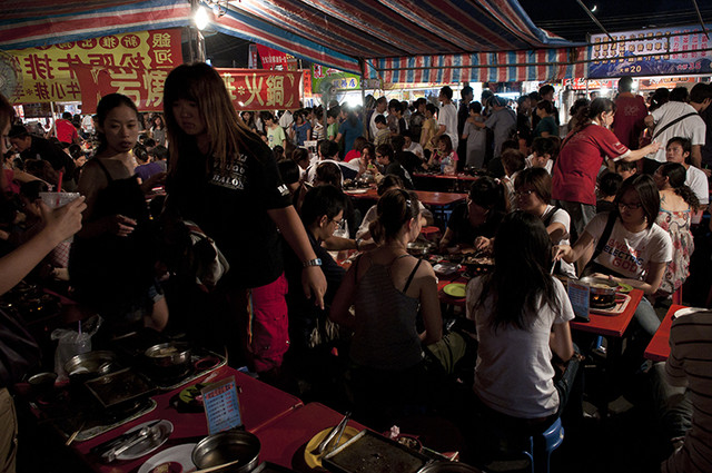 台南的花園夜市周圍拉起布條,說是入圍台灣十大夜市。