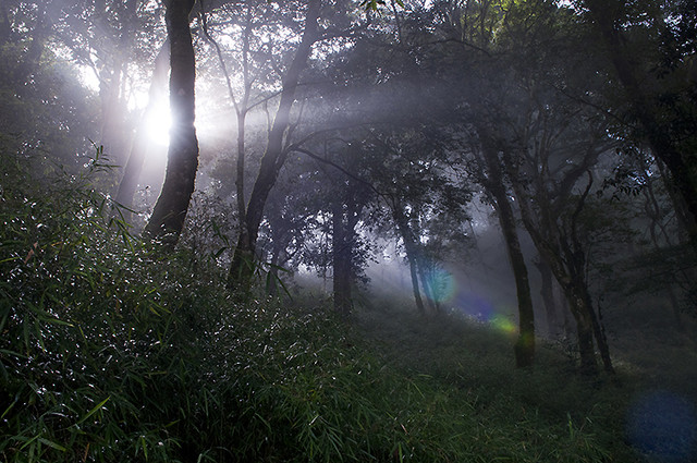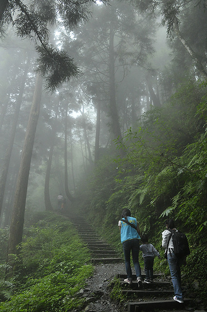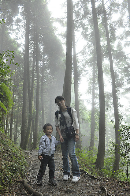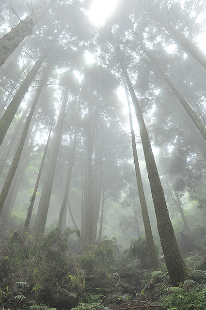 看看那白霧和高聳的檜木林,超美的。背相機來總算值得~