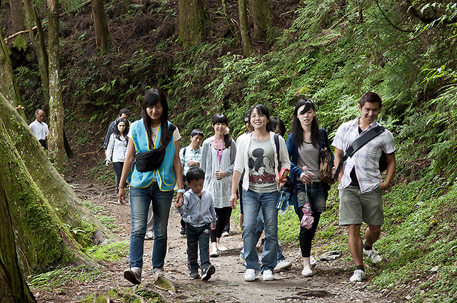 慢慢隨著解說員一步步進到森林步道。一踏進來讓人感到非常舒暢⋯⋯