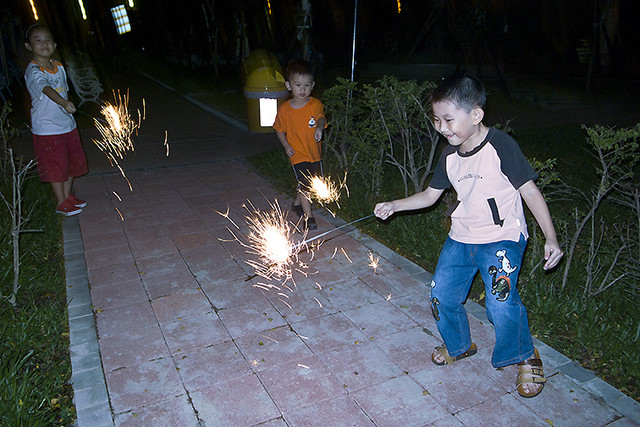 剛開始姊姊、哥哥都不敢碰仙女棒,覺得很危險。看著你玩完一支後,大夥搶著要。