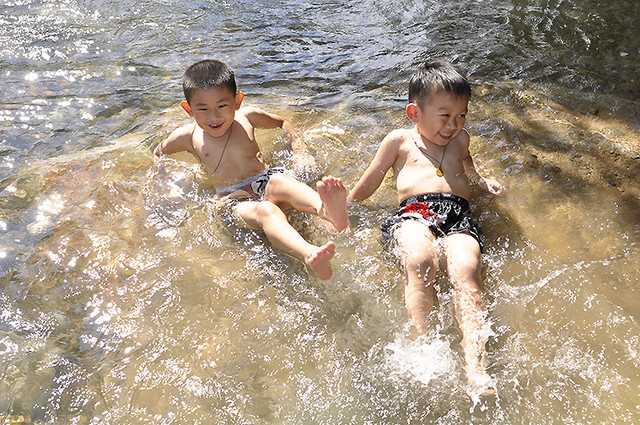 叔叔:這夏天都還沒帶你們來溪邊戲水。
