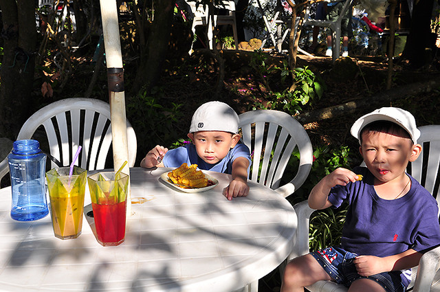 在溪邊把所有餅乾全吃掉了,游泳真的很耗體力。接著再薯條、香腸⋯⋯