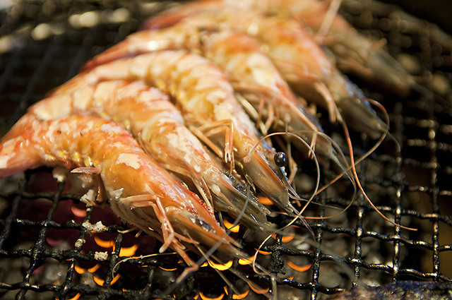 後頭都是姑姑在獨撐大局,一個人佔領了整個烤盤。香噴噴的蝦子~