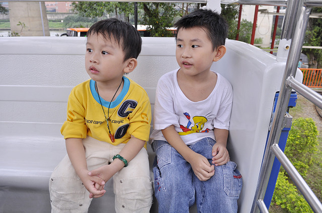 我:等下會轉的很快喔~如果害怕還可以下去。