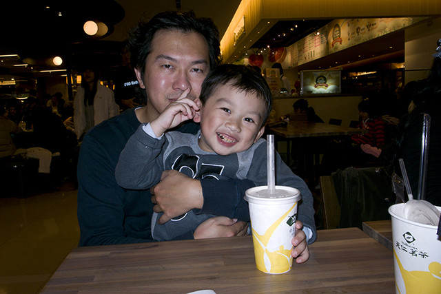 我們找了個座位,你吃的很開心,我和你媽站你兩旁。