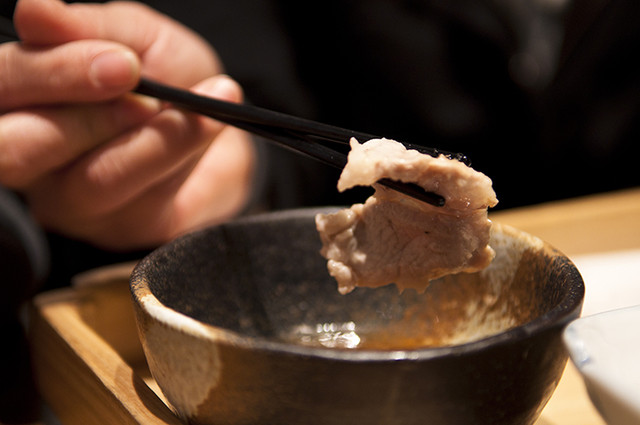 肉片沾上特製的醬料,還是原味好吃。