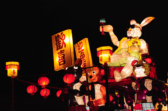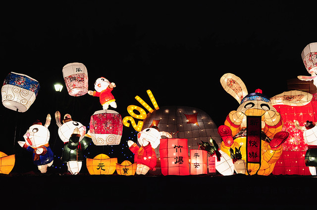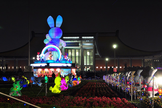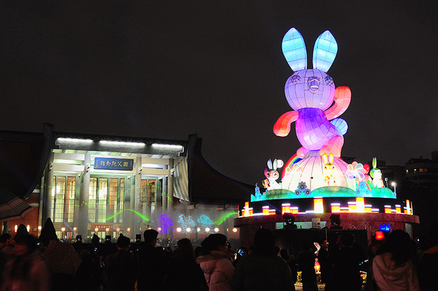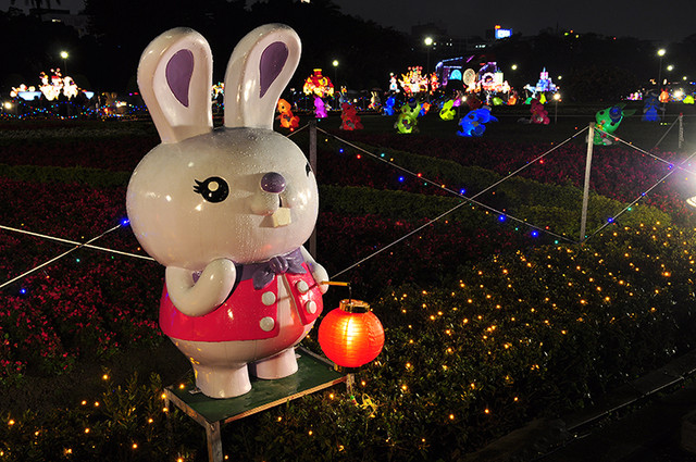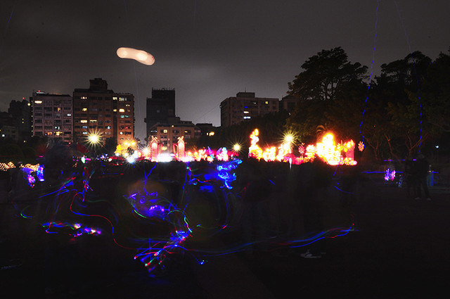 本想下雨應該沒有人,結果人還是超多,撐著傘逛花燈。