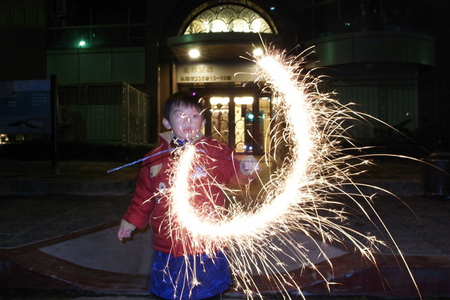 飯後沒鞭炮玩,太危險。玩玩仙女棒!