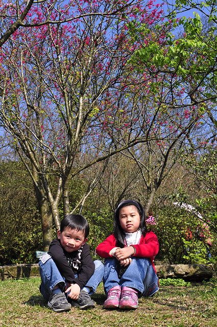 姊姊在四周圍拍照,小雞哥哥到處收集小樹枝不知要做什麼?