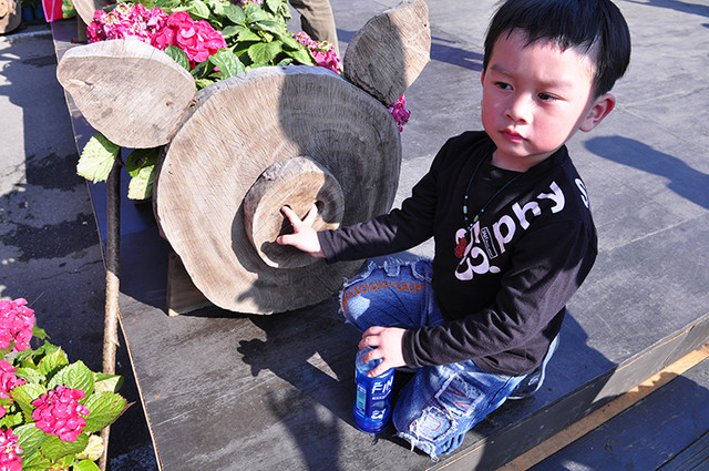 我們順著階梯邊跑邊玩得一步步往花鐘那方向前進。