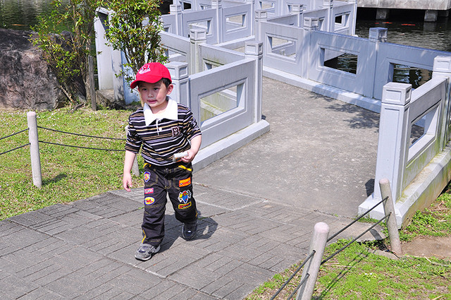 挑個涼爽樹蔭下餵魚,我則是站在豔陽下~