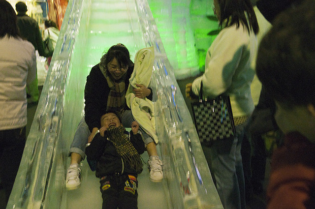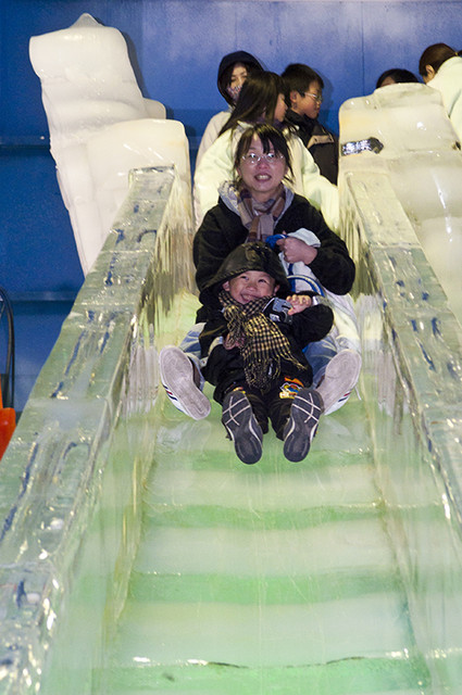 好玩的只有那個冰塊做的溜滑梯,讓你跟妳媽開心不已。