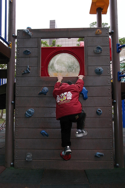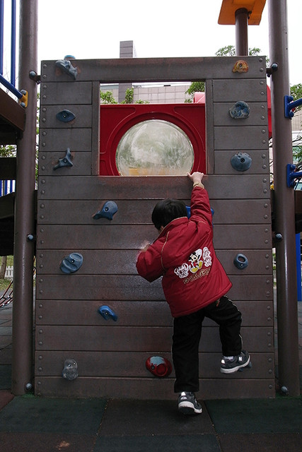 懋:爸爸~我們去公園,我會爬牆了喔~很厲害!