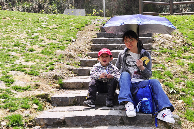 我:這邊的石階細縫本來就很大,才叮嚀你走路要小心。