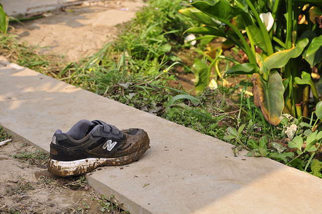你整隻腳踩進了爛泥中,動彈不得。後來你媽把你拉了出來。