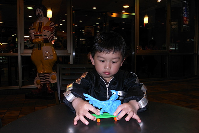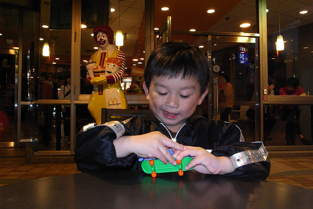 診所內滿是病患,怕你病情又加重。我陪你在隔壁的麥當勞玩玩具,回家記得按時吃藥喔~