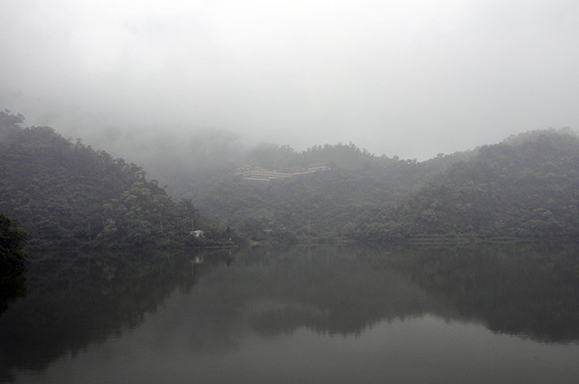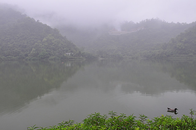 從那寺廟可以飽覽整個梅花湖,無奈雨勢太大。大家提不起勁~