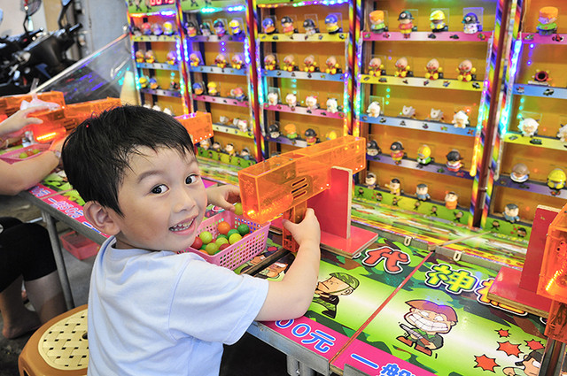 淡水街上的店家,不斷翻滾的猴子,滾動的模樣真的很懶散。